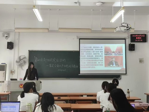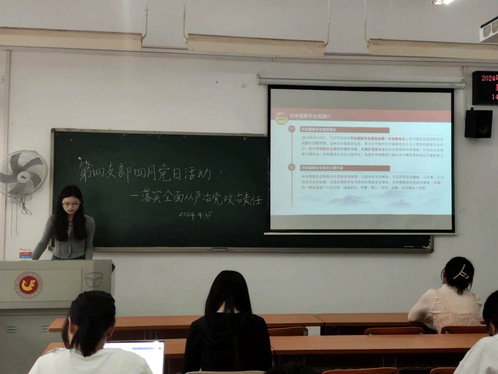 本网讯(通讯员:陈冰洁)2024年4月25日,太阳成集团tyc7111cc员工第四党支部在教2-313开展了四月主题党日活动,本次活动主题为“落实全面从严治党政治责任”,由吴靖文同志主持,参会人员为员工第四党支部全体党员和发展对象。