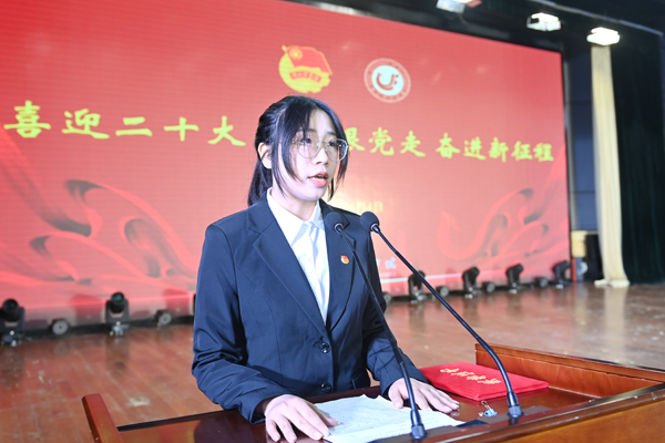 颁奖大会上,陈思颖的发言中表示:青年当牢记党的教诲,奋斗青春、扛起责任,无私奉献、无畏向前,秉承“厚德博学、经世济民”校训精神,争做“三有三实”人才。