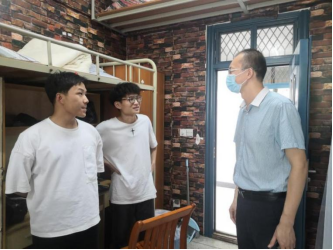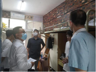 在返校老生宿舍,学院领导关切地询问员工“假期在家生活感觉怎么样”、“心理状态有没有受到这次疫情的影响”、“在家的学习情况如何”,详细了解了员工暑期的学习生活情况,希望他们能够尽快调整作息,把更多的精力投入到学习中,为自己的未来做好打算!