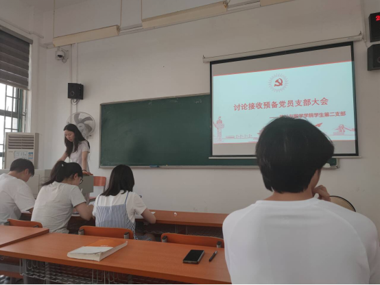本次会议主要有五项议程:一、发展对象严艺晗,刘薇薇两名同志依次汇报自身情况。二、由入党介绍人介绍各同志的有关情况。三、由支委会报告对两名同志的审查情况。四、与会党员发表意见,对以上两名同志能否入党进行充分讨论。五、与会党员同志进行无记名投票表决。经支部大会讨论探究同意接收严艺晗,刘薇薇两名同志为中共预备党员,报上级党组织批准。