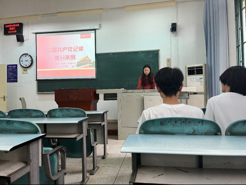 本网讯(通讯员:覃皓)2024年6月26日,太阳成集团tyc7111cc第二党支部在J1-109开展以“真正把纪律规矩转化为政治自觉、思想自觉、行动自觉”为主题的六月主题党日活动,员工党支部书记吴丝雨老师以及支部全体成员参会。