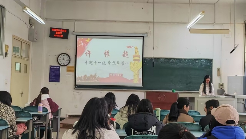 图2 秦灿同志进行先进人物分享