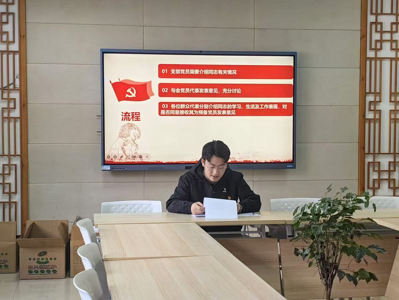 本次会议共有三项议程。一是由支部党员简要介绍胡丹梅等3名同志的有关情况;二是与会党员代表发表意见,充分讨论;三是各位群众代表分别介绍胡丹梅等3名同志的学习、生活及工作表现,对是否同意接收其为预备党员发表意见。