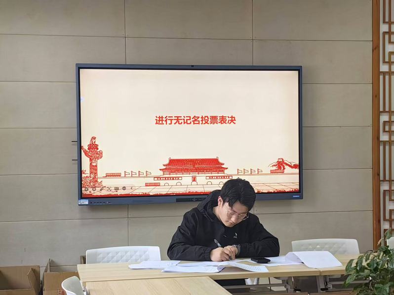 会议第四项,支部书记张澈老师宣读大会决议:“综合上述几位同志的意见,本支部将采纳各位提出的意见,形成会议记录,上报上级党组织批准,建议近期召开支部大会,对其转正问题进行讨论。”
