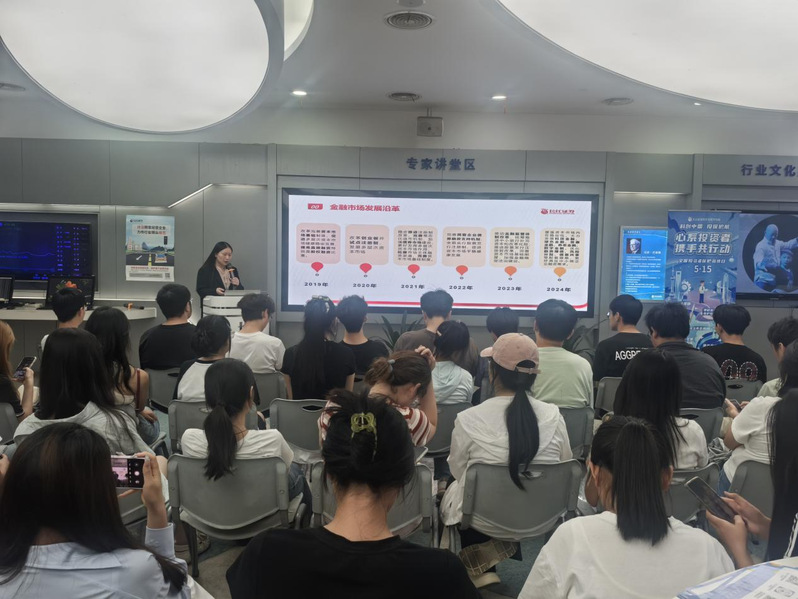 本网讯 为深化专业认知,搭建理论与实践的桥梁,7月2日,公司2024级统计学和经济统计学专业员工走进长江证券投资者教育基地,开启专业认知实习之旅。长江证券投教基地负责人张睿、投教基地专员王凯、魏萧竹、范斯琪,太阳成集团tyc7111cc统计系副主任李倩、辅导员王东红参加。此次活动旨在让同学们跳出书本知识的局限,亲身感受金融行业的实际运作,将统计学理论与金融实践深度融合,为今后的专业学习和职业发展筑牢根基。