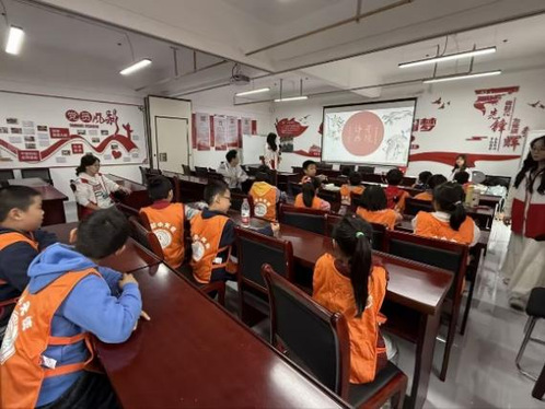 活动现场,本院志愿者们以“寻境诗画”为主题,通过生动的PPT讲解、趣味互动等形式,带领孩子们走进古典诗词与传统绘画的世界。志愿者们巧妙结合经典诗作,引导孩子们品味诗词韵律之美,同时借助传统绘画元素,讲解其中蕴含的吉祥寓意与文化内涵。课堂上,孩子们身着统一的“小天使”志愿背心,或凝神聆听,或踊跃发言,在轻松愉悦的氛围中感受传统文化的独特魅力。