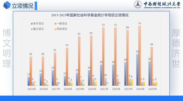 张虎教授以“国家基金项目申报的逻辑与策略”为主题,从国家社科基金与自然科学基金的评审流程、选题方向、研究框架设计、论证逻辑及创新表达等方面进行了系统讲解。张教授结合历年国家基金统计学科立项数据,分析了项目申报的总体趋势与竞争格局,重点强调了选题的新颖性、论证的科学性以及研究基础的重要性。他指出,优秀的基金项目应当兼具问题导向与创新导向,既要关注国家重大战略需求,又要体现学科前沿突破。