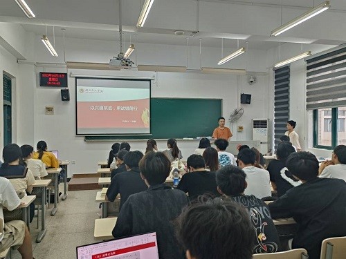 田胜在金数2241班以“以兴趣筑底,用试错前行”为主题进行了学科竞赛以及科研等学习经验分享,他鼓励同学们积极参与学科竞赛,在比赛中凸显专业知识与素养,同时,详细介绍了自己赛前准备、赛中竞技、赛后总结三个方面的经验和心路历程。他号召同学们不断提升自我,把自己融入奋进的潮流中,在奋斗中创造价值、收获幸福,不负大学时光。