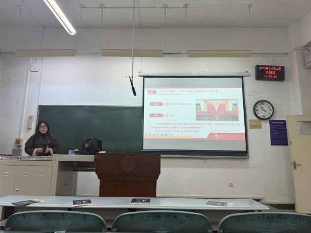 张昕玥以“在接续奋斗中谱写中国式现代化新篇章”为主题,从全会概况切入,用生动鲜活的案例、通俗易懂的语言,系统解读了全会精神的核心要义。深入阐释了“十五五”时期的发展环境与优势,强调我国经济基础稳、韧性强,制度优势、市场优势等愈发彰显,即便面临诸多不确定因素,长期向好的趋势不可逆转。全会明确的指导思想如灯塔指引航向,“六个坚持”的原则为发展保驾护航,七大发展目标勾勒出清晰图景,从现代化产业体系建设到科技自立自强,从民生保障到美丽中国建设,十二项重要部署全面擘画了未来五年的发展路径。