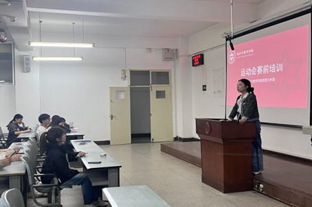 会上,文体部负责人分别介绍了运动员、志愿者、机动人员的注意事项,将运动会纪律进行介绍。随后,吴丝雨老师向大家表示关心和鼓励,希望运动员们能够确保自身安全的同时,奋力拼搏,为学院争得荣誉。
