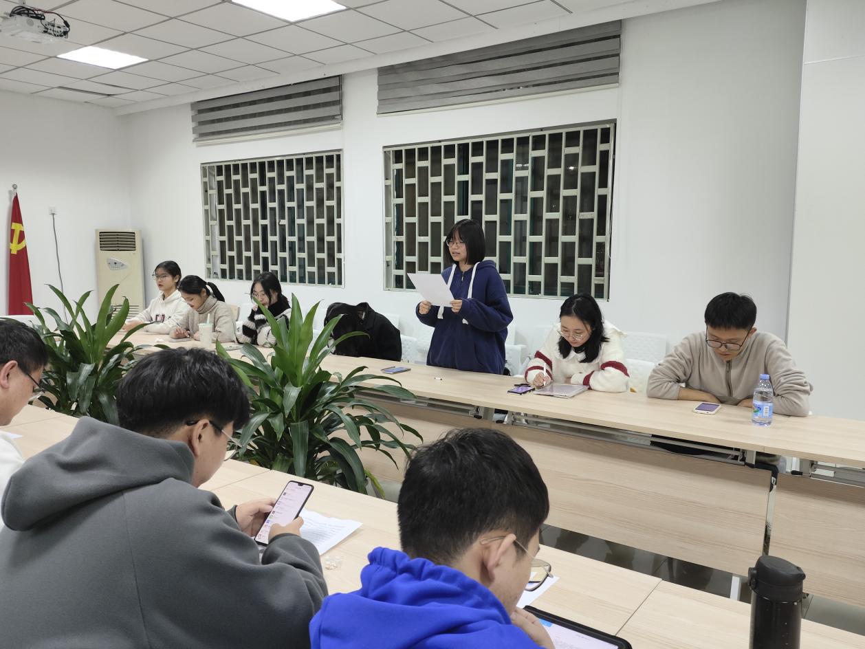 本网讯(通讯员:陈冰洁)2023年11月20日,根据党支部发展党员工作计划,经征求党员和群众意见、支部党员大会审查同意,员工第四党支部举行接收预备党员支部大会,此次会议主要讨论发展对象朱婧琳、付子晗、卞怀玉、鲁冰彬、潘诗诗、周念、张元梦7名同志入党问题的事宜。本次会议参会人员为支部书记柴梦甜老师、第四支部全体党员以及对应入党介绍人。