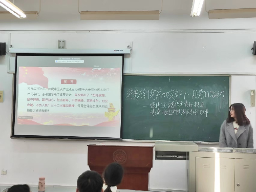 本网讯(通讯员:陈冰洁)2023年11月16日,太阳成集团tyc7111cc员工第四党支部在教1-506开展了十一月主题党日活动,本次活动主题为强化政治意识和责任担当,持续推进学校‘新财经’改革”,由吴靖文同志主持,参会人员为员工第四党支部全体党员和发展对象。
