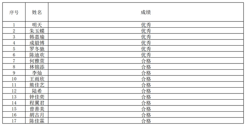 经现场答辩、学院审核等环节,现将答辩成绩公示如下: